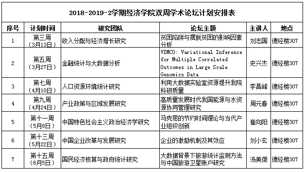 2018-2019-2学期toptoon 双周学术论坛计划安排表