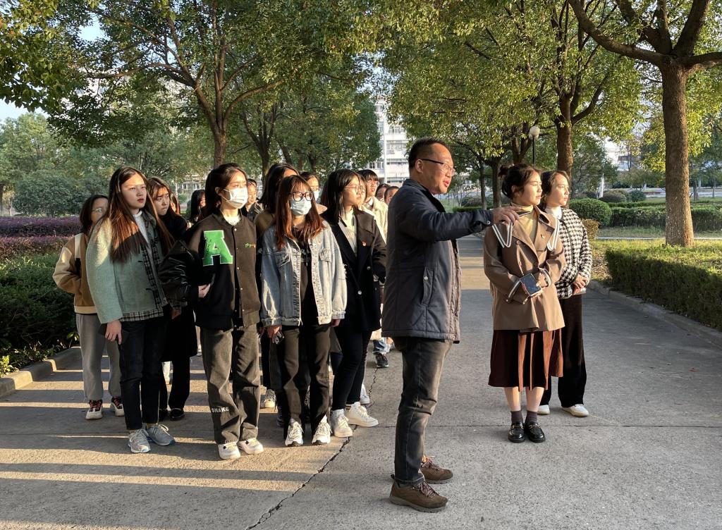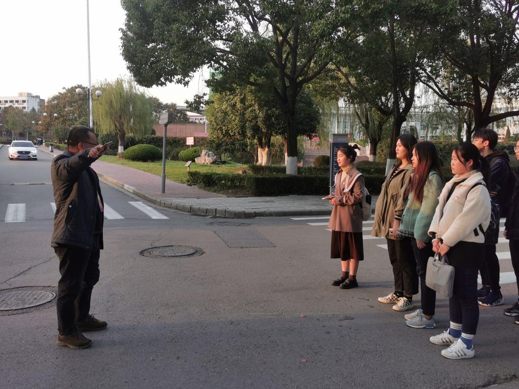 沿途陆斌处长还为大家介绍了“海绵城市”的概念,并为我们指出了校园哪些地方是我们的小生态、小湿地,夸赞它们在下雨时发挥的泄洪功能。随后,陆处长带着大家停在了西苑操场与中苑交汇的十字路口,这正是我们今天第三个打卡点。大家都很疑惑,这里没有河道,没有拦水闸这和污水排放有什么关系?陆斌处长笑着让大家安静仔细听,果真,大家听到了脚下管道流水潺潺的声音,陆斌处长为大家讲解道:“大家不要小看这个污水管道,整个中苑所有的生活污水都经由这个管道流向主排污口,这个管道极其重要。前面讲过到达天鹅湖的雨水,通过这个管道旁边的内河水系流向文苑河。那么接下来我们就按照雨水的排放轨迹前往第四站吧”。