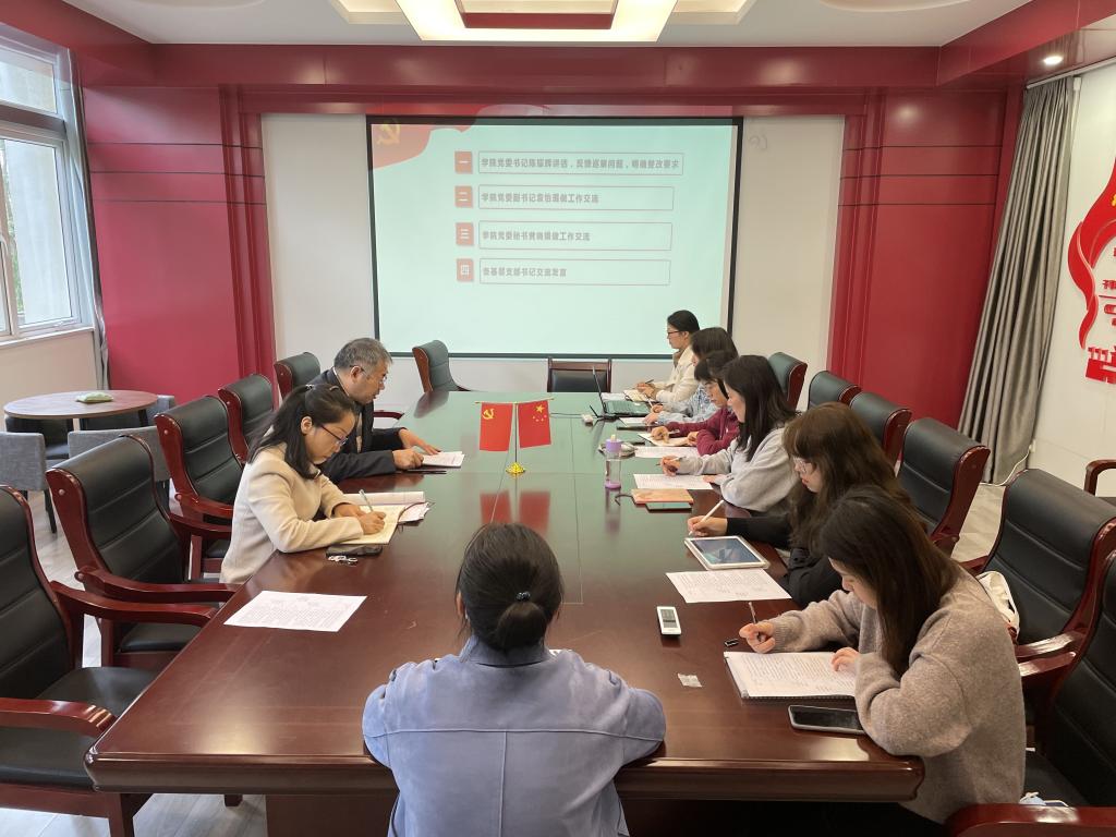 委员会关于进一步规范巡察整改工作的意见》,陈书记从贯彻落实党的路线方针政策和中央、省委重大决策部署情况、贯彻落实全面从严治党战略部署情况、贯彻落实新时代的组织路线情况、巡视巡察、审计、主题教育等改正落实情况四个方面反馈了学校巡视组的意见,解读了学院党建工作整改内容和方向,希望各支部书记要充分认识到肩上的责任,积极推进学院党建工作持续深入整改。接着,学院副书记袁怡琨同志仔细分析了学院党建工作中存在的问题和不足,和各个支部书记再次集体学习三会一课、党员发展细则、党员学习相关制度,要求责任到人,明确活动开展及记录规范;对教工支部三会一课和党员学习日内容进行重点指导,要求严格落实“第一议题”制度;对学生支部日常学习中应注意认知准确和记录正确与规范做出了具体要求。她向各支部通报了学院在“不忘初心、牢记使命”主题教育中的整改落实情况,要求各支部巩固深化主题教育成果,实现整改措施的长效化、常态化、制度化。最后,7位党支部书记从党支部基本情况、开展工作思路、党员发展过程中的问题、难题、“三会一课”制度落实、党日活动开展、创新党建思路和路径等方面做了深入交流;与会人员共同翻阅了各支部的《党支部工作手册》,并对如何更加规范做好“三会一课”的记录进行了交流。