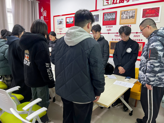 国行公祭,法立典章。2024年,是南京大屠杀惨案发生87周年,也是国家公祭日设立十周年。为铭记历史,缅怀遇难同胞,12月11日下午,toptoon 于“红苗学堂”一站式学生社区开展“铭记苦难历史,汲取前行力量”国家公祭日纪念活动,学院政治辅导员、党委副书记贾亦璞,党支部书记黄晓娟、梁少颖,团委书记潘怡,部分预备党员及团委副书记参加此次活动。