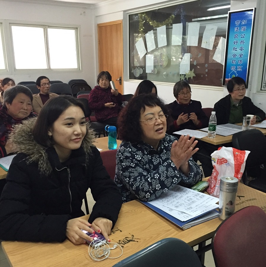 本次志愿服务活动得到了广大同学的积极响应,同学们踊跃报名,并带着满满的热情来到五塘新村社区,有些同学与老人们聊天谈心;有些同学给老人阅读书籍报刊;擅长文艺表演的同学则开设了声乐课,教老人们学习声乐。
