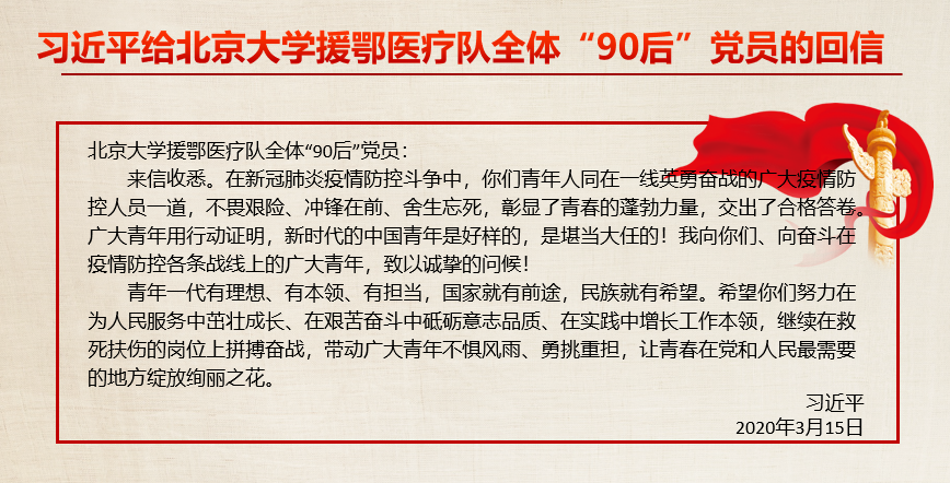 为引导青年学生深入学习领会习近平总书记给北京大学援鄂医疗队全体“90后”党员的回信精神,3月25日,院党委副书记袁怡琨通过腾讯会议为toptoon