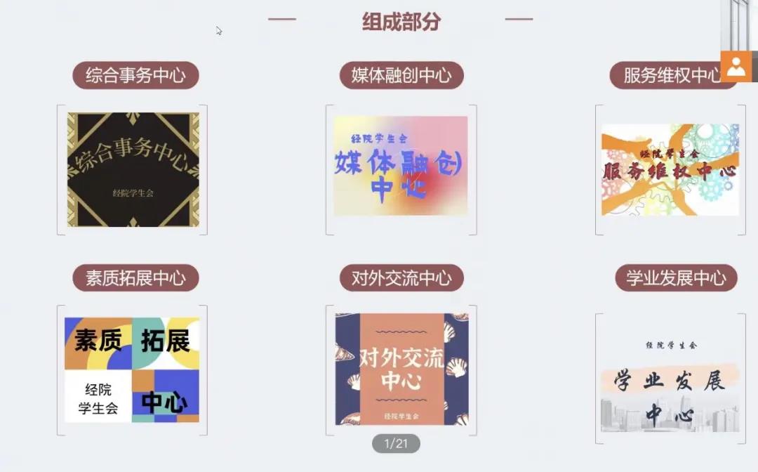 学生会各中心部长们依次发言。综合事务中心张弛有度,媒体融创中心通文达艺,服务维权中心创新进取,素质拓展中心务实超越,对外交流中心明朗大方,学业发展中心力学笃行。每个中心都洋溢着青年人的朝气与活力,可谓是“满堂花醉三千客”。部长们对各个中心的详细介绍,全方位展示了学生会活动的丰富多样,极大地调动了同学们的热情,也帮助同学们做出最适合自己的选择。
