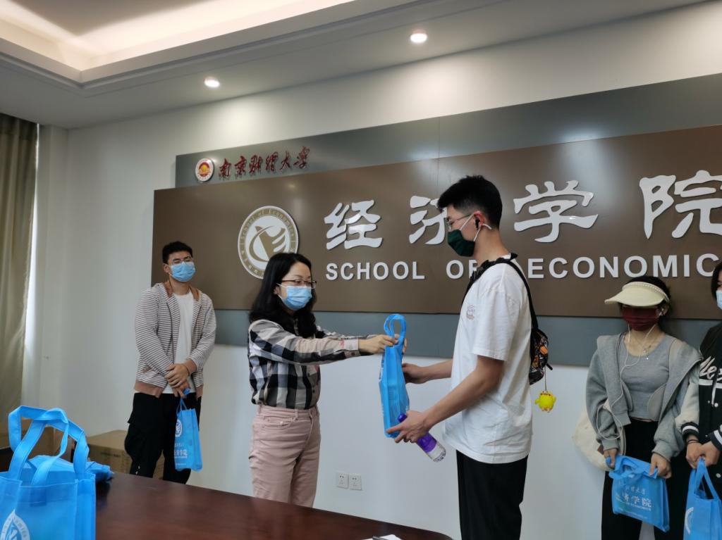 党委副书记袁怡琨老师亲手为学院一百多名家庭经济困难学生发放包含口罩、洗手液等防疫用品和甜蜜零食的“爱心防疫包”,并提醒同学们增强疫情防控意识,严格遵守学校疫情防控相关规定,在积极配合完成学校疫情防控各项工作的同时安心学习,努力进步。