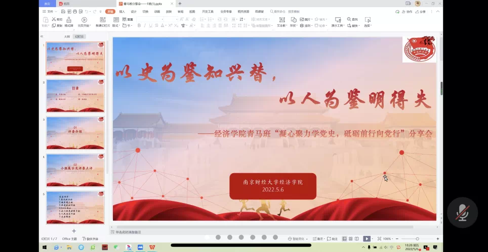 于5月6日线上举行青马班“凝心聚力学党史,砥砺前行向党心”分享会活动。青马班一班与二班分别在两个会议中同时进行此次活动。