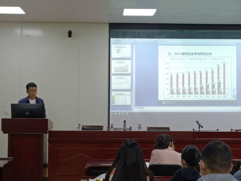 党委副书记袁怡琨老师、师磊老师、徐昊翔老师出席讲座并为同学们做考研指导,各年级有考研意向的同学参加讲座。