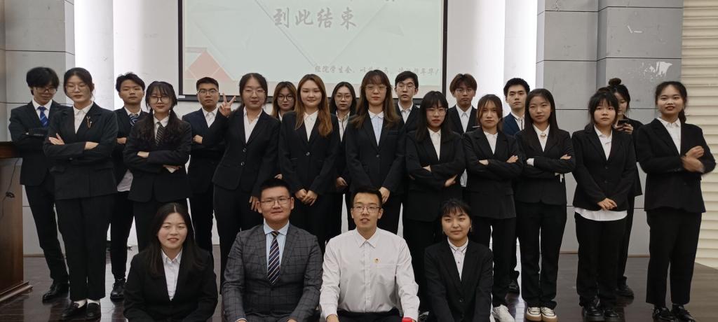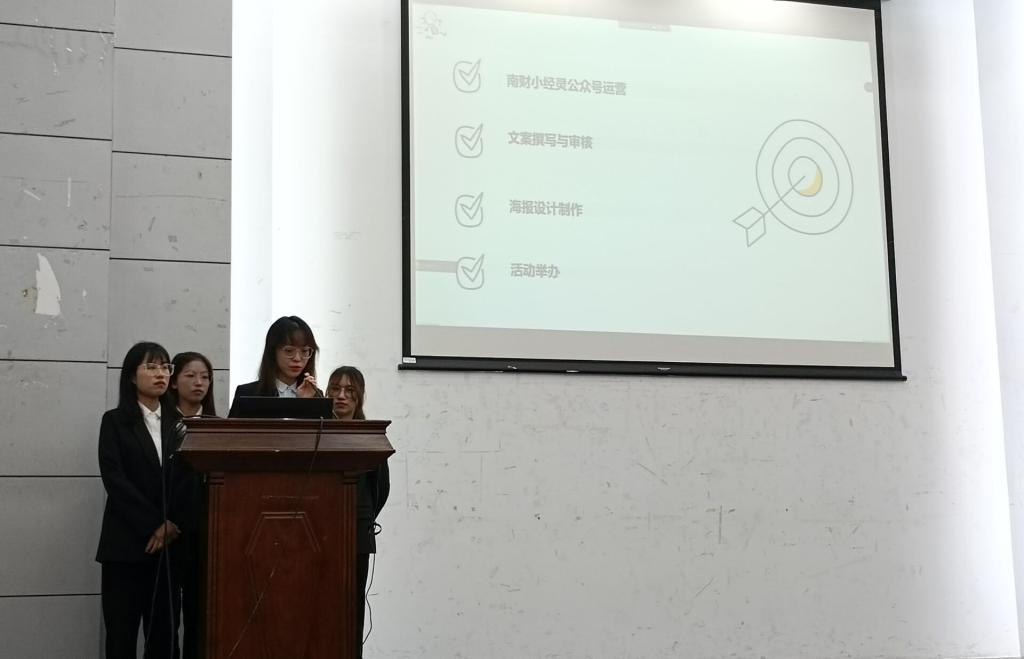 学生会于德经楼二楼报告厅召开第十九届学生会终期述职答辩大会。受疫情影响,本次述职大会以线上线下相结合的方式开展。出席本次活动的嘉宾有校学生会主席靳千一、财政与税务学院学生会主席戎露雪、艺术设计学院学生会主席张越、公共管理学院学生会主席汪佑子、营销与物流管理学院学生会主席李思雨、toptoon