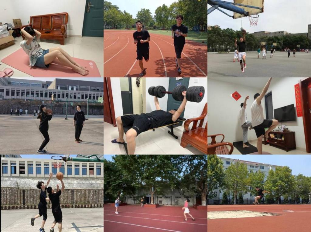 瑜伽、举重、健美操、仰卧起坐、俯卧撑、慢跑、打羽毛球......,同学们在课余的时间里相互监督、互相鼓励、并利用线上微信小程序打卡并积极分享自己的运动照片或感受。从一张张洋溢着青春活力的运动照片及一篇篇运动后收获的感悟中体会到同学们参与运动的激情和愉悦。