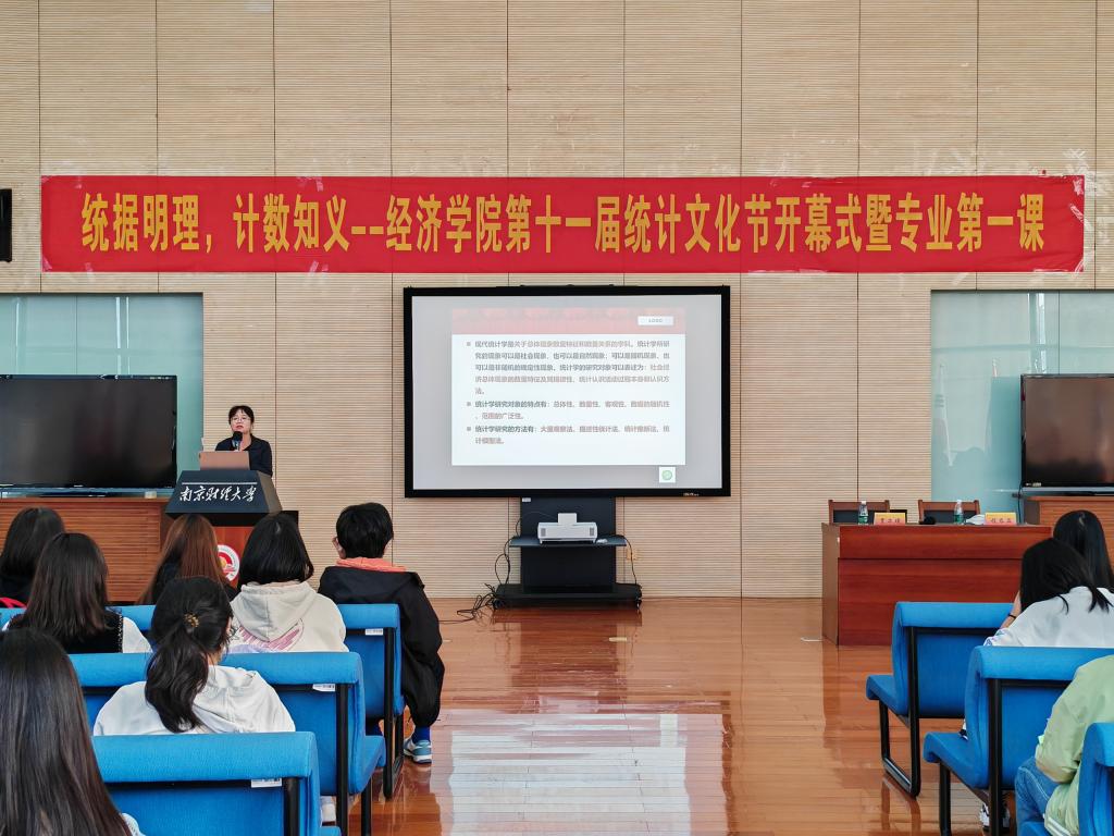 于仙林校区图书馆四楼世界之窗举办了“统据明理,计数知义”第十一届统计文化节开幕式暨专业第一课。学院党委副书记贾亦璞、统计系系主任程恭品、学院大一新生参加活动。