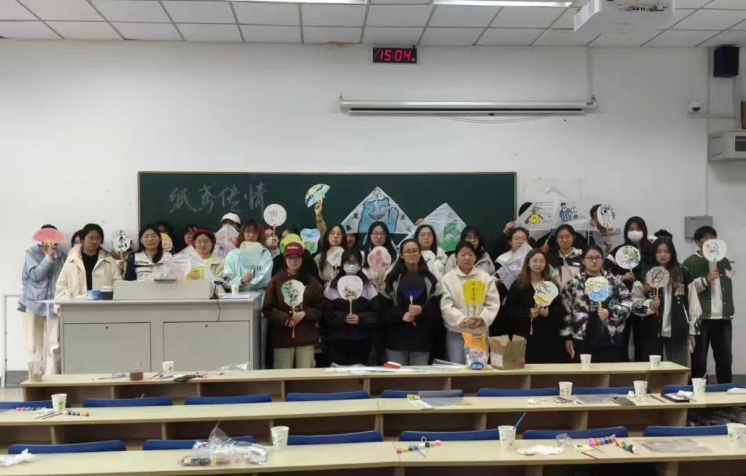 活动伊始,同学们跟随两位主持人了解风筝和团扇的文化习俗,并自由组队参与风筝和团扇的创作。各小组确定好主题后,便开始进行创作。有人用画笔勾勒出大致轮廓,有人进行细节的修改刻画,还有人用彩色颜料进行填充……同学们团结一致,分工明确,各式各样的设计跃然纸上。笑声爽朗,穿透云霄,同学们把春天装进风筝和团扇,在春意盎然的季节放飞心情、放飞对未来的美好期许。