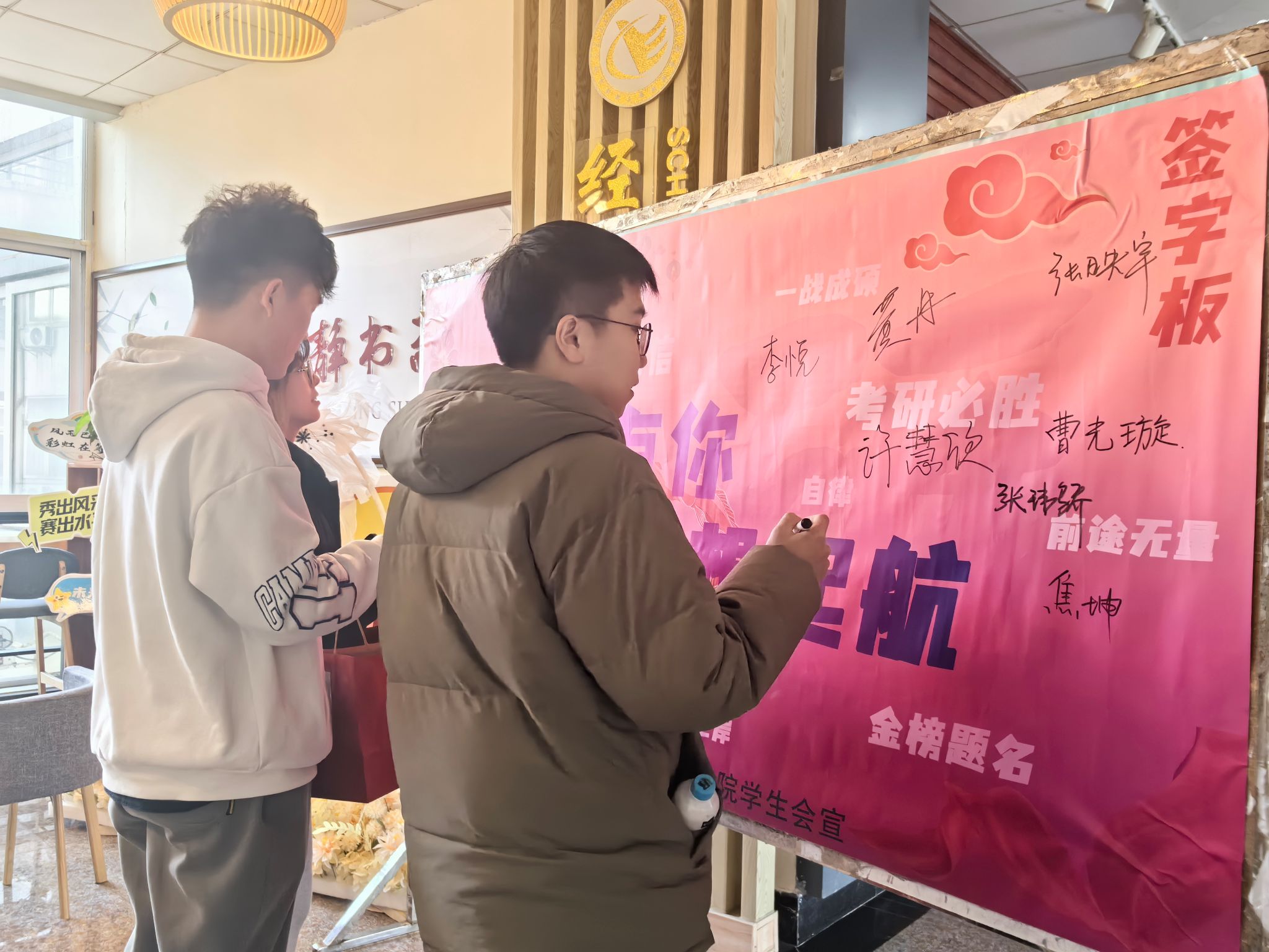 于 12月16日中午在德经楼静书斋举办了一场温馨的“研途有你,梦想启航”考研送温暖活动,为即将踏上考场的全体考生送上真挚的鼓励与祝福。