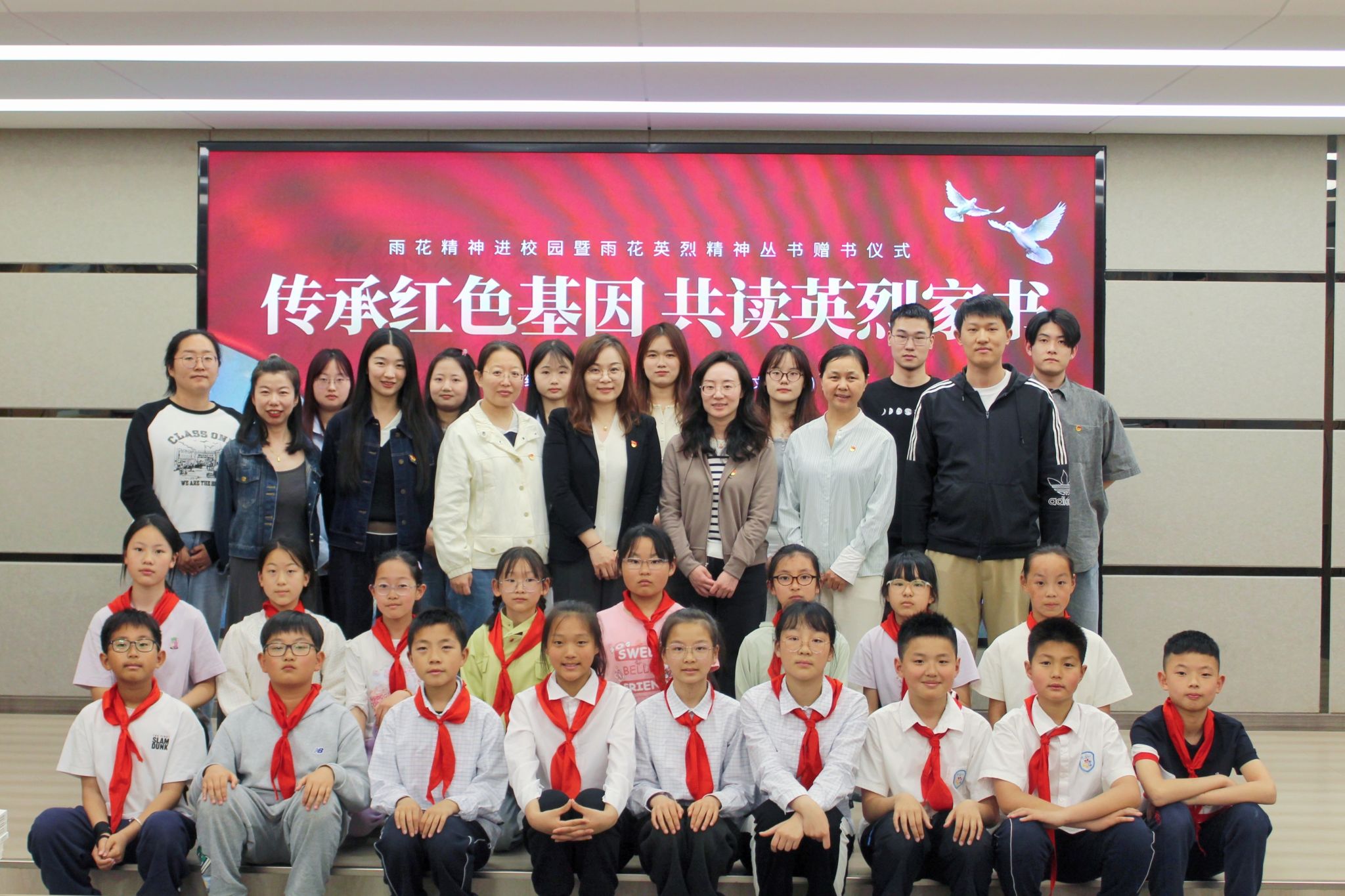 向晓庄小学捐赠雨花英烈精神丛书,双方代表共同完成赠书仪式。随后,大学生代表深情诵读了郭凤韶、朱杏南、周执中等革命先烈的家书,字句铿锵,再现了英烈们为理想信念献身的赤子之心。在“大手牵小手”共读环节,6名大学生与6名小学生结对共读史砚芬烈士的《诀别书》,通过跨学段互动,让红色精神在共情共鸣中薪火相传。