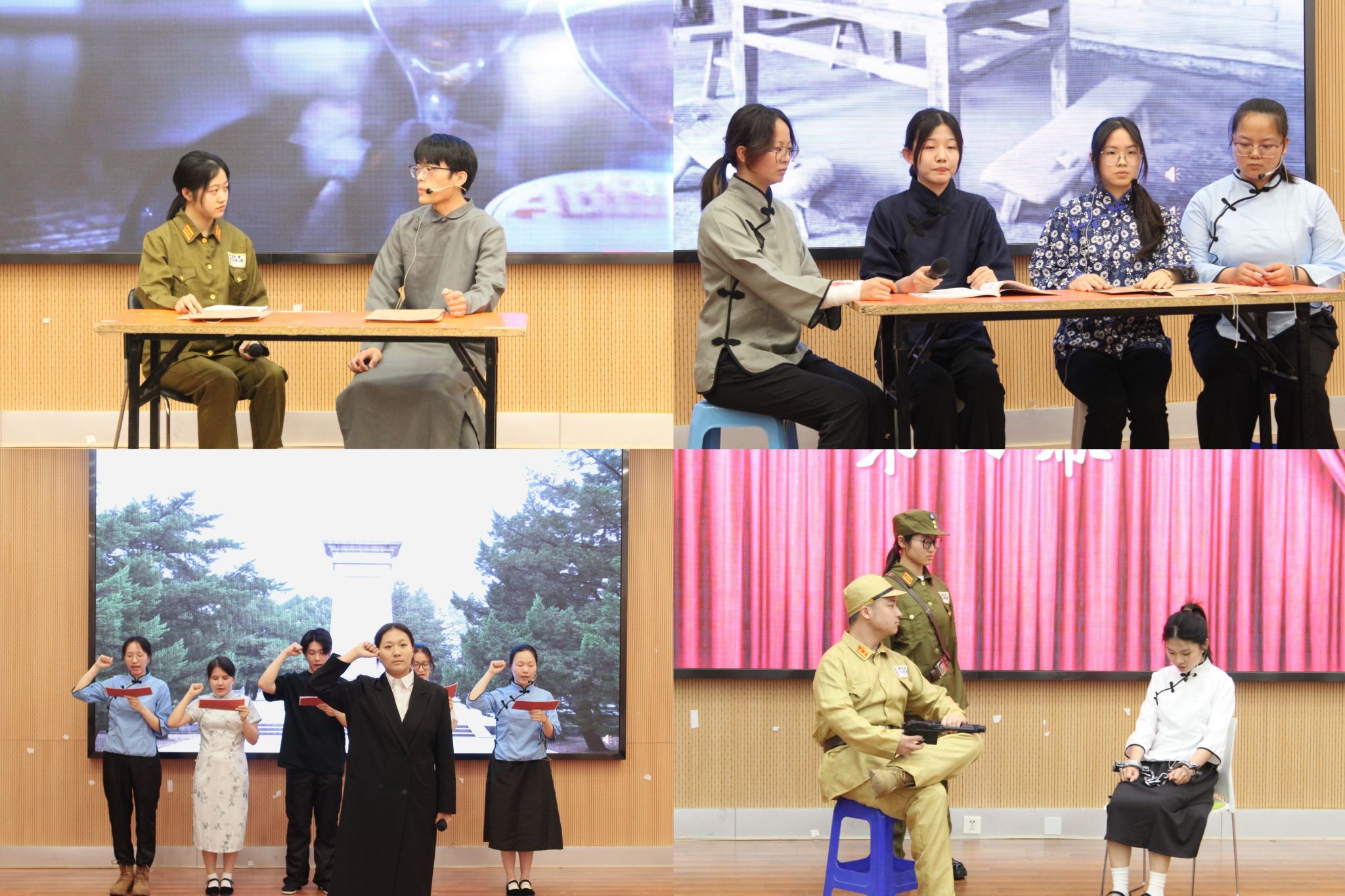 的思政教育品牌活动,自2023年推出以来,已累计举办四届,覆盖师生达1000余人次。活动紧扣“党史教育情景化、理论学习具象化”的育人理念,通过“百年党史”“改革开放”“雨花英烈”等主题创作,将中国共产党人的精神谱系与中国近现代史脉络有机融合,构建起“编-演-观-悟”四位一体的思政教育闭环。在该活动的示范效应下,原创话剧《擎旗御侮:罗登贤》代表学校参演“红色的五月”雨花台-高校“大思政课”联盟展演活动,引发热烈反响。这种“青年编、青年演、青年悟”的创新模式,通过艺术表达与理论学习的深度交融,让红色基因在青春舞台上焕发时代光彩。
