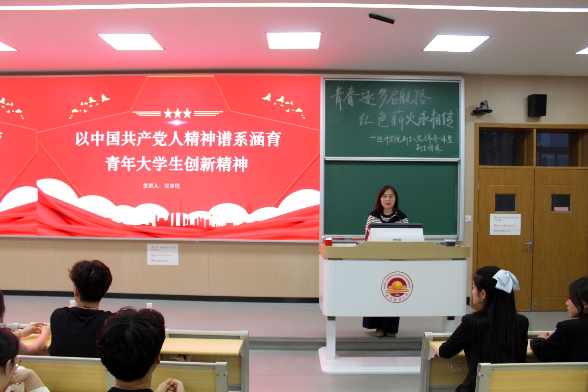 于博观楼201开展“青春逐梦启航路,红色薪火永相传”新生入党启蒙第一课暨新生团课,学院党委副书记贾亦璞老师、院团委书记潘怡老师,院团委相关同学以及全体新生共同参与本次课程。