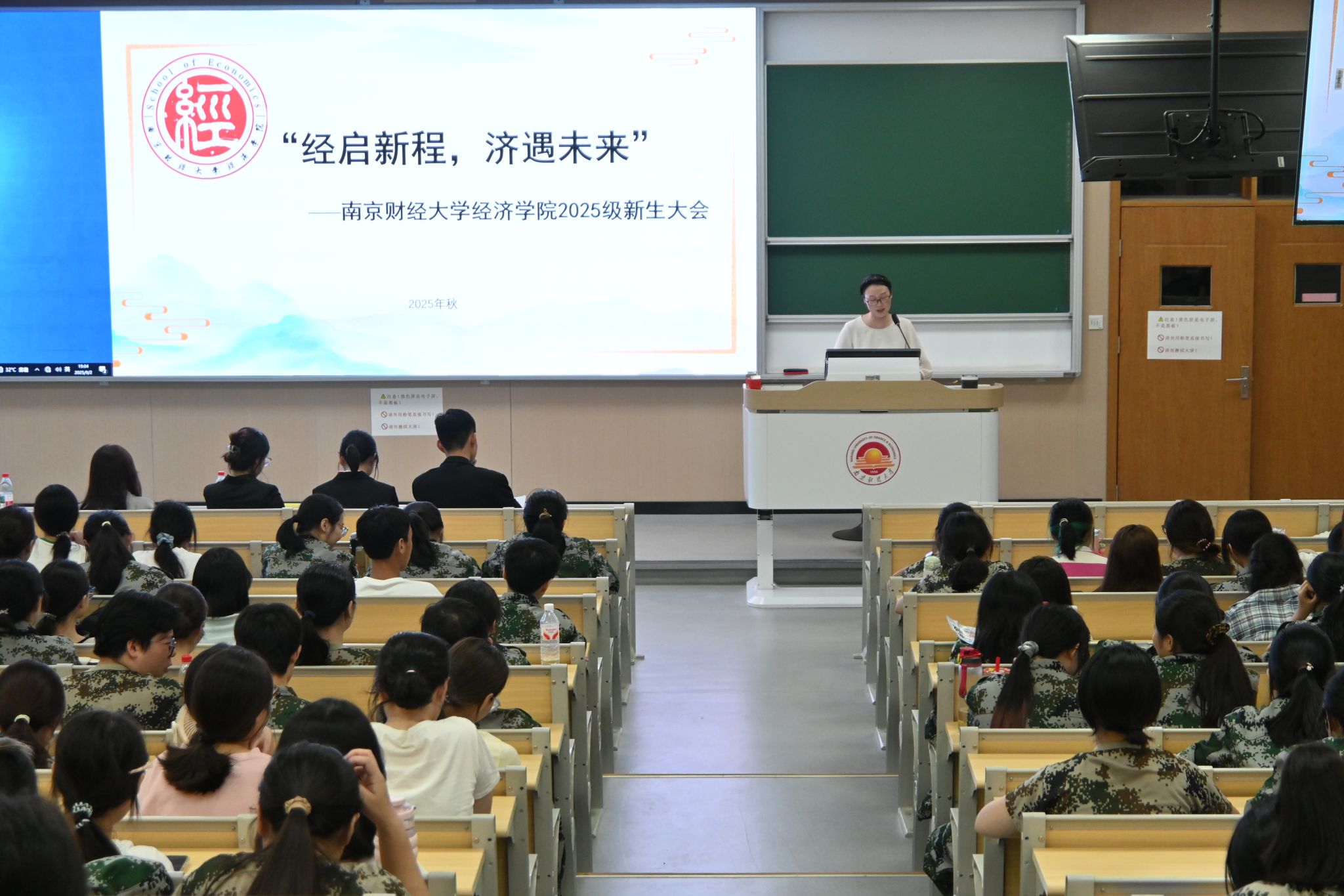 于博观楼201教室举办“经启新程,济遇未来”2025级本科生新生大会,学院党委副书记贾亦璞老师、2025级辅导员梁少颖老师、学院学生组织相关成员以及2025级全体本科新生参与本次大会。
