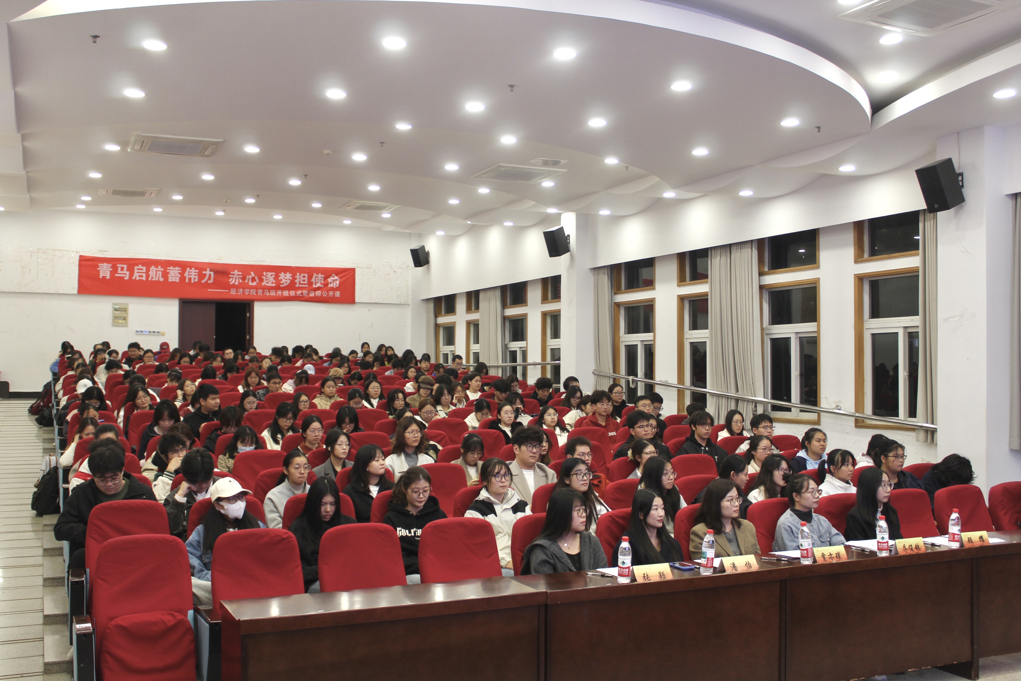 党委副书记贾亦璞,校团委组织与社团管理科科长乔俊鸽,院团委书记潘怡、学生党员代表及本期青马班全体学员共同参与本次会议。