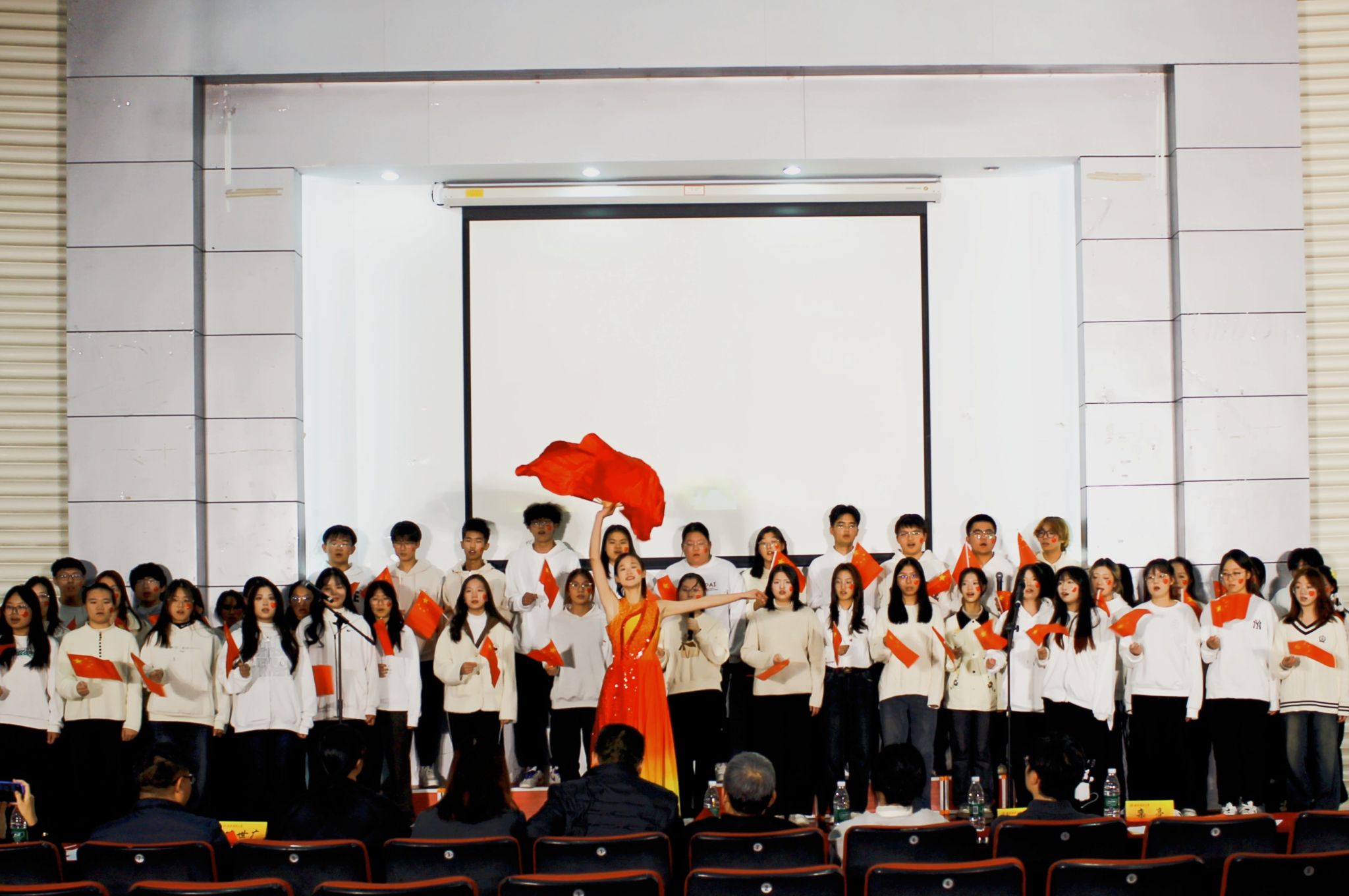 2504班带来的《夜空中最亮的星》,如一汪清泉浸润全场。每一个音符都裹着少年人的纯粹,每一句哼唱都藏着对未来的笃定,让全场在旋律中读懂:青春路上,信仰便是那束永不熄灭的星光。