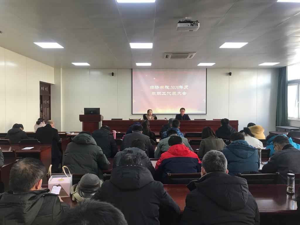 于德经楼307会议室召开2020年度教职工代表大会,学院党政领导和全体教职工参加会议,会议由toptoon