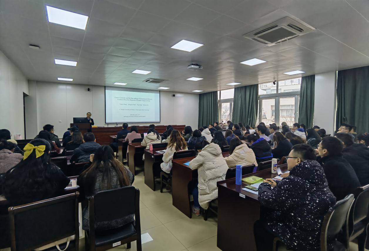 邀请来院作题为《地方官员的职业关注与风险承担:来自处置僵尸企业的证据》的报告,报告由朱红根院长主持,尹敬东副院长及部分师生聆听了本次报告。