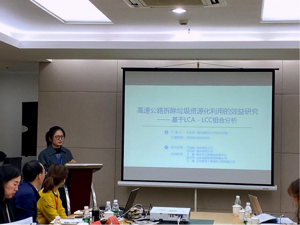 王庆玲同学在分会场汇报了《高速公路拆除垃圾资源化利用的效益研究——基于LCA - LCC组合分析》一文。文章从案例分析出发研究了高速公路拆除垃圾的资源化管理问题,通过对南京市某循环基地的实地考察和调研数据,构建LCA - LCC组合分析模型,量化并对比了资源化利用模式和外运填埋模式的环境负荷与经济成本,并重点探讨了资源化管理过程中的碳减排效应,为实现2060年的碳中和目标提供新的视角。该文的汇报现场反响热烈,引起了与会者的普遍关注,受到江苏大学田刚教授、上海理工大学黄蓓佳副教授等专家的指导。该论文从近百篇投稿论文中脱颖而出,获得“中国能源经济与管理优秀研究生论文贰等奖”。