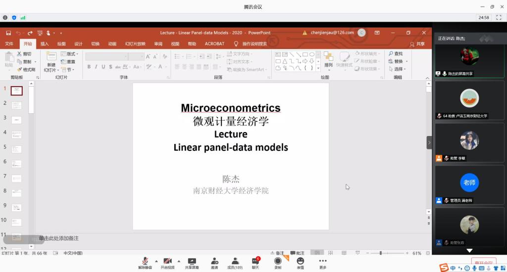 陈杰副教授为暑期学校的学员们作了题为“面板计量模型及Stata实现”的专题讲座。