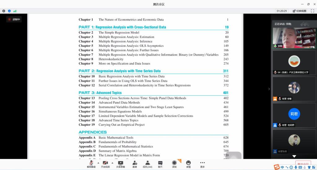 李刚教授为暑期学校的学员们作了题为“计量经济学基础理论”的专题讲座。