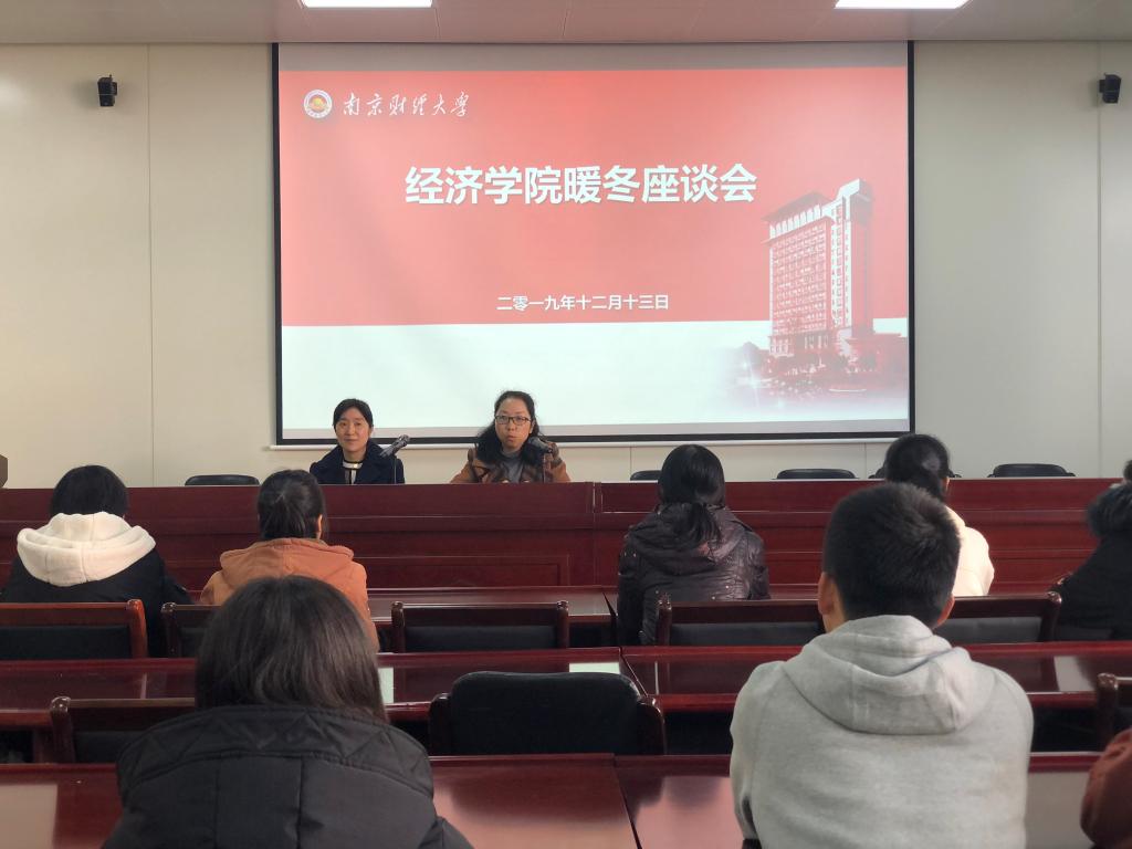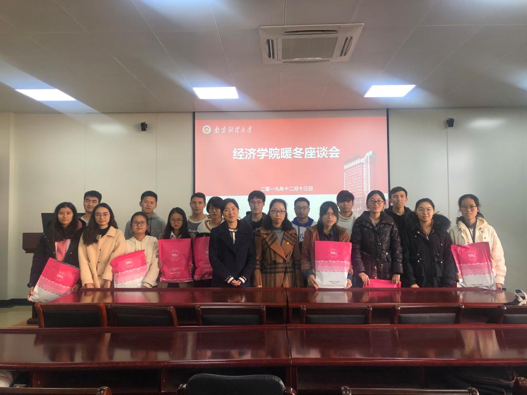 在德经楼337室举行家庭经济困难学生暖冬座谈会,党委副书记袁怡琨、学工办主任尹海燕、19级辅导员徐昊翔和部分2019级家庭经济困难学生参加了此次座谈会。