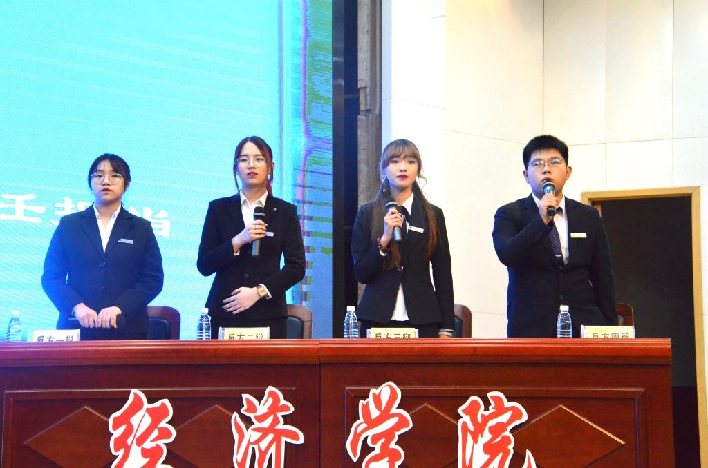 本次辩论决赛的辩题为:肩负时代使命,当代青年更应该强化能力提升/责任担当的意识。国贸学院为正方,toptoon
