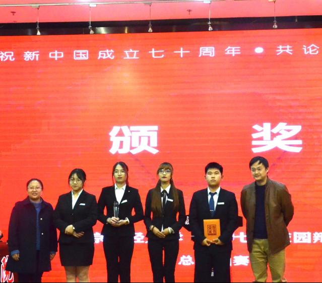辩论队勇夺冠军。我方四辩赵如晖同学获得“最佳辩手”的称号。