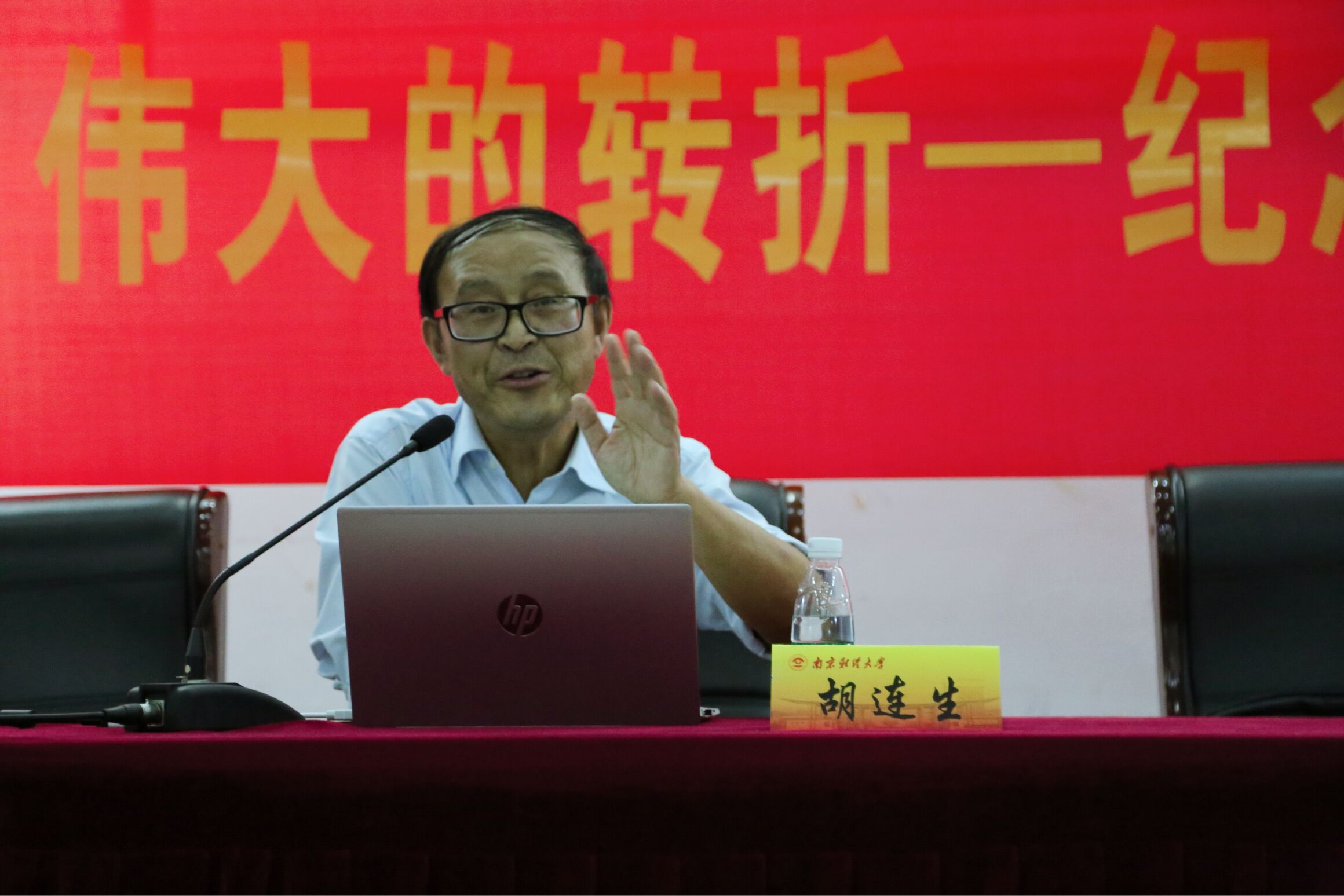 首先,胡教授以改革开放四十周年我国所取得的巨大成就开篇,分别从经济增长态势、经济发展水平、人民生活水平以及助推发展中国家的文明进步四方面进行具体地生动地讲解,其中还提出“人民生活水平不仅要看GDP的人均值,还要看总量”的重要观点。接着,胡教授总结了我党改革开放四十年来的积累的可贵的经验:坚持四项基本原则、遵循现代人类文明发展的共同规律、坚决抵制和防止资本主义的西化和分化等。最后,胡教授从全面从严治党、推动经济高质量发展、国家监察体制改革的全面推行、打好精准脱贫攻坚战以及全面深化改革等众多方面具体展现了我国新时代伟业。