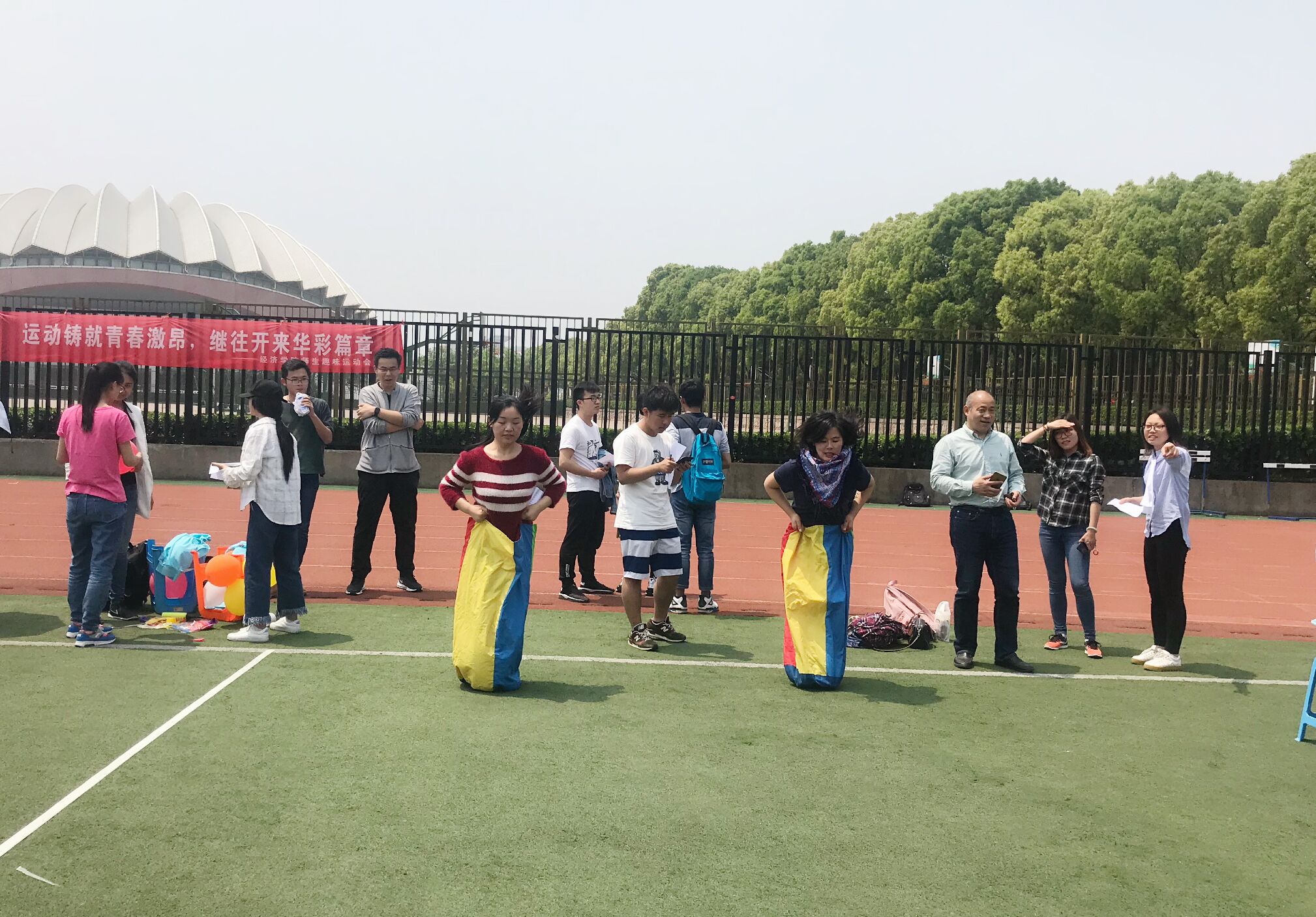 “砥砺前行”比赛中,师生组抓稳节奏,从容不迫,在一分钟内一人用筷子将第一个碗里的乒乓球夹到第二个碗里,另一人用吸管将第二个碗里的乒乓球吸到第三个碗。“跨越入世”比赛中,师生穿上麻袋双腿并拢,奋力向前跳跃,交替完成来回的袋鼠跳。“南方的春天”中,教师和学生穿上toptoon