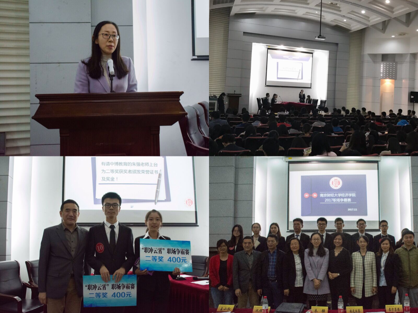 经过激烈的角逐,基地1502班的田牧聪同学荣获一等奖,经统1502班的岳倩、经统1503班的栾子扬同学获得二等奖,基地1503朱学斌、经统1503李陈广元和经统1401柳徐慧荣获三等奖,其他5名同学获得优秀奖。“职冲云霄”职场称霸赛决赛在同学们的热烈掌声中圆满落幕。