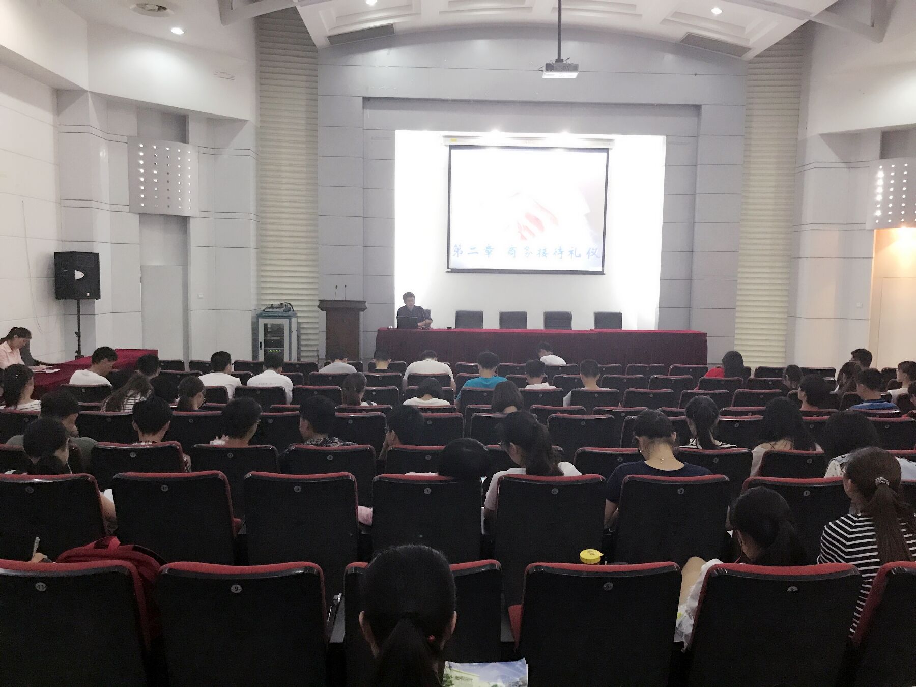 在经济学科楼报告厅开展商务接待礼仪讲座 。本次讲座由国际贸易学院副教授、国贸系系主任程进老师主讲。