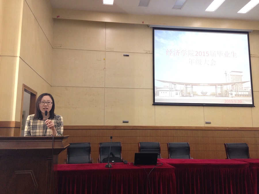 于管理学科楼召开2015届毕业生年级大会,副院长叶林祥老师,学院党委副书记郝园园老师以及毕业班辅导员徐昊翔老师参加了此次大会。