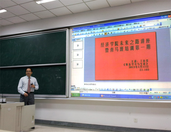 本期讲坛在王老师的一个关于“教育即生活”的例子中展开,引入今天讲座的第一个话题:学习动机。王老师认为,我们学习的动力不应该再像过去 那样为了有一份分配的工作,而应该找到自己的兴趣所在,快乐学习,学有所长,术有专攻;接着,王老师以自己的切身经历强调了兴趣学习、课外学习的重要性;然后,王老师用SWOT分析法系统深刻剖析了我们应当怎样认识到自己的优势,并如何扩大竞争优势优势。他强调,大学生不仅要注重培养个人特长,还应该时刻培养自己的批判能力,认真思考经济实际问题,不要仅停留在课堂理论。王老师还指出,我们当代大学生应当树立远大的人生目标,即全心全意回报社会。他赋予了“富贵有种,贫困有根“以新的含义,种即为善,根即为恶,人只有心怀善念才能获得幸福。王老师肯定了自我修养及信念的重要性,他认为我们应该坚持自己心中的信仰,敬重自己的民族文化,努力做到修身养性,并总结了修身的不同境界:格物、致知、正心、诚意、修身、齐家、治国和平天下。最后王老师向我们阐述了正确的为人原则:止于至善,爱人如己,从善如流,从恶如崩。为人处世,若总为自己而活,只会活的很累,当我们多为他人着想时,才会获得更多的前进动力。