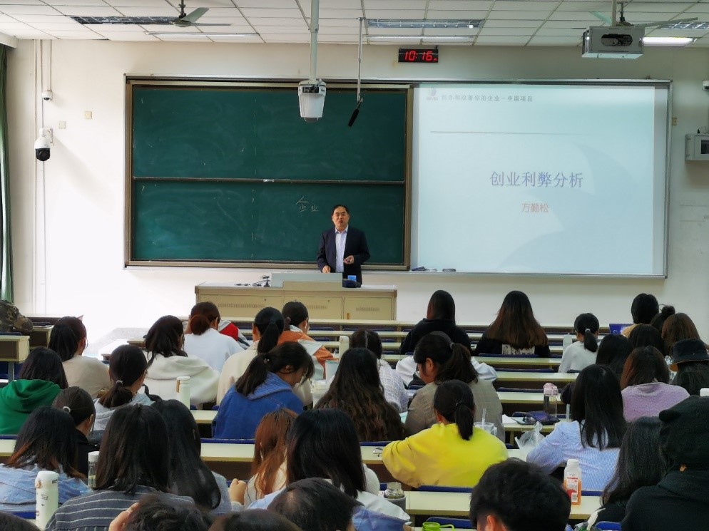 最后,方勤松老师在2020年11月份间做了三次系列讲座,他结合创业实践中的思考模式、项目融资和风险规避等重要现实问题,让学生们深刻理会到双创实践的魅力所在,进一步促进同学们深入思考,坚定知行合一、理论与实践相结合的做人做事理念。