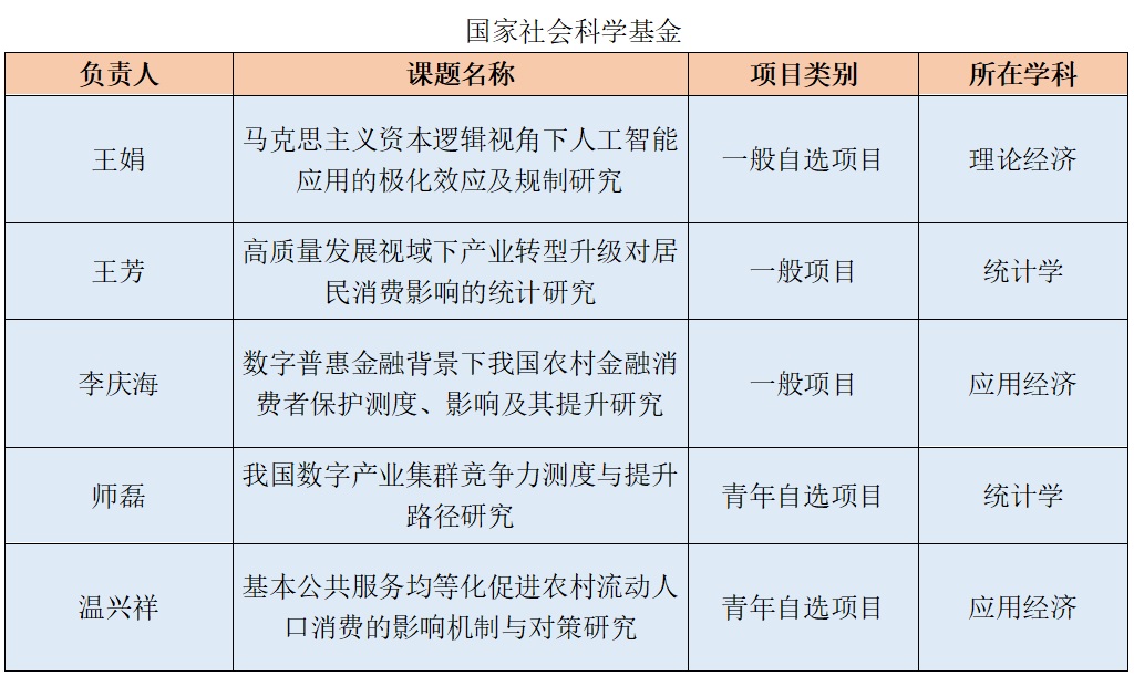 共有9位老师获批立项,其中国家社会科学基金立项5项,国家自然科学基金立项4项。
