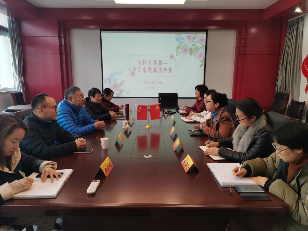 与压力共舞--学工心理减压沙龙在仙林校区德经楼329会议室顺利开展。活动邀请校学生处副处长赵亮、心理中心高剑婷担任主讲嘉宾。学院党委书记陈耀辉、副书记袁怡琨及全体学工老师参加了此次活动。