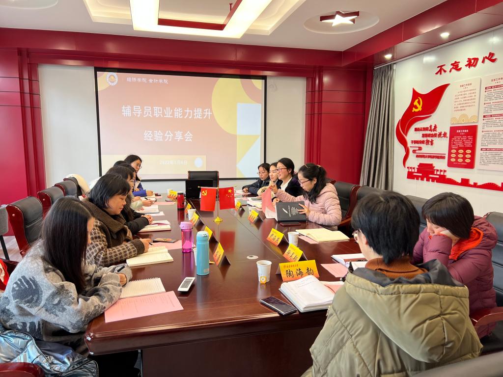 经灵生涯工作室主办的辅导员职业技能提升经验分享会在德经楼329会议室举行。活动特邀会计学院党委副书记刘颖和部分辅导员老师参加,学院副书记袁怡琨主持,学院全体辅导员参加此次活动。