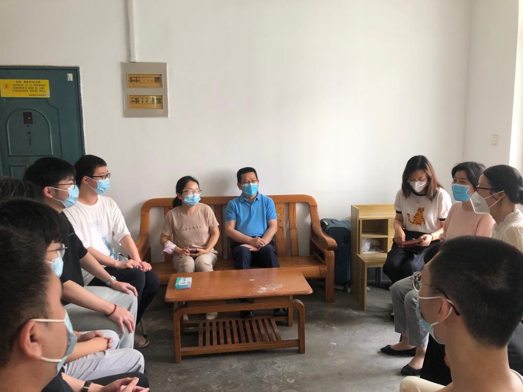 在学生宿舍,石奇部长和同学们交流近期学习生活状态、学业规划等内容,介绍学校关心关爱学生、全面落实防控要求的各项措施,了解常态化疫情下同学们的学业、生活、心理等方面的困难,倾听同学们的意见和建议。石奇部长希望大家遵守好疫情防控期间学校各项管理规定,把疫情封闭的这段时光当作人生的重要历练之一,合理安排学习生活,加强体育锻炼,保持乐观向上的良好心态;勇担时代使命,把个人之“小我”融入祖国发展之“大我”,勇于挑战、历练和提升自己,朝着目标不懈奋斗,努力成为可堪大用、能担重任的栋梁之才。
