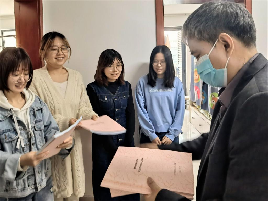 学院领导给研究生发放学院编印的《学位论文工作手册》
