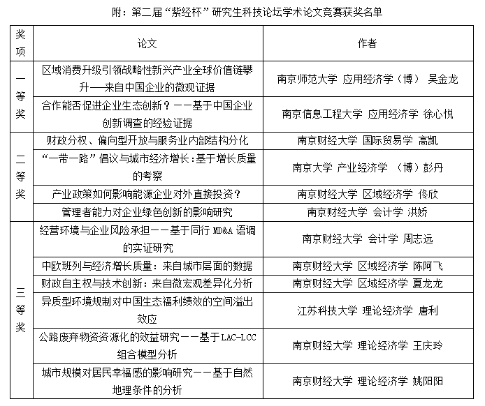 在研究生培养方面取得的成绩,指出“紫经杯”科技论坛影响力日渐扩大,收到了来自全国多地高校硕、博研究生的数十篇优秀稿件,本次大赛的成功举办有利于全校研究生学术水平的提高和学术氛围的营造,对筹划组织本次大赛的师生表示感谢并预祝大赛圆满成功。