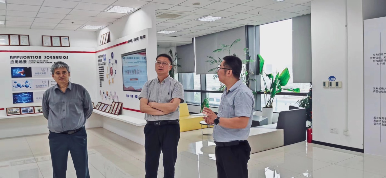 领导的到来表示热烈欢迎,并带领朱红根院长一行参观了中诚区块链研究院(南京)有限公司展厅,详细介绍了中诚区块链研究院的发展背景、基本情况及在金融监管、数字农业方面的应用场景。