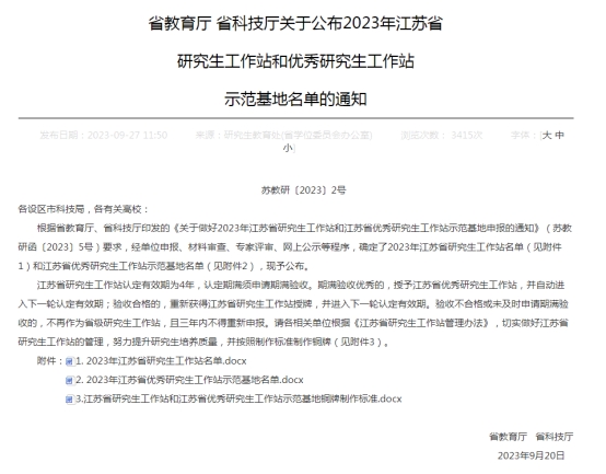 申报的江苏科易达环保科技股份有限公司被批准为2023年江苏省研究生工作站。