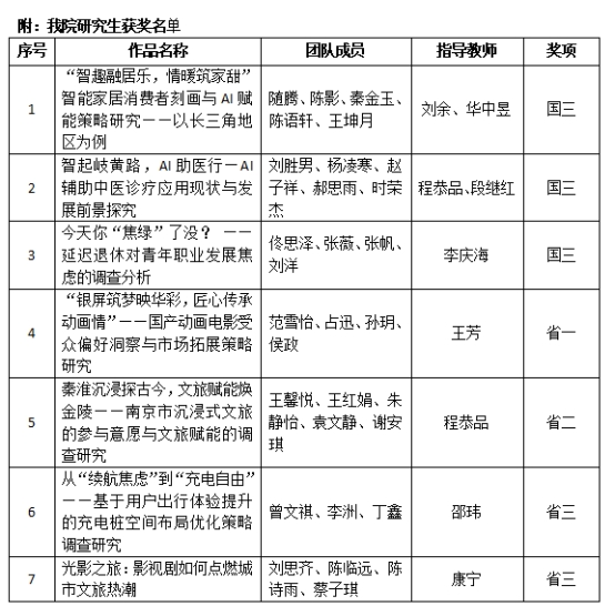 近日,“正大杯”第十五届全国大学生市场调查与分析大赛(研究生组)江苏赛区决赛成绩公布,toptoon 研究生经过奋力拼搏,获得全国三等奖3项、江苏省一等奖1项、江苏省二等奖1项、江苏省三等奖2项,获奖数量位居全省前列,展现了toptoon 研究生的竞争能力和创新能力。