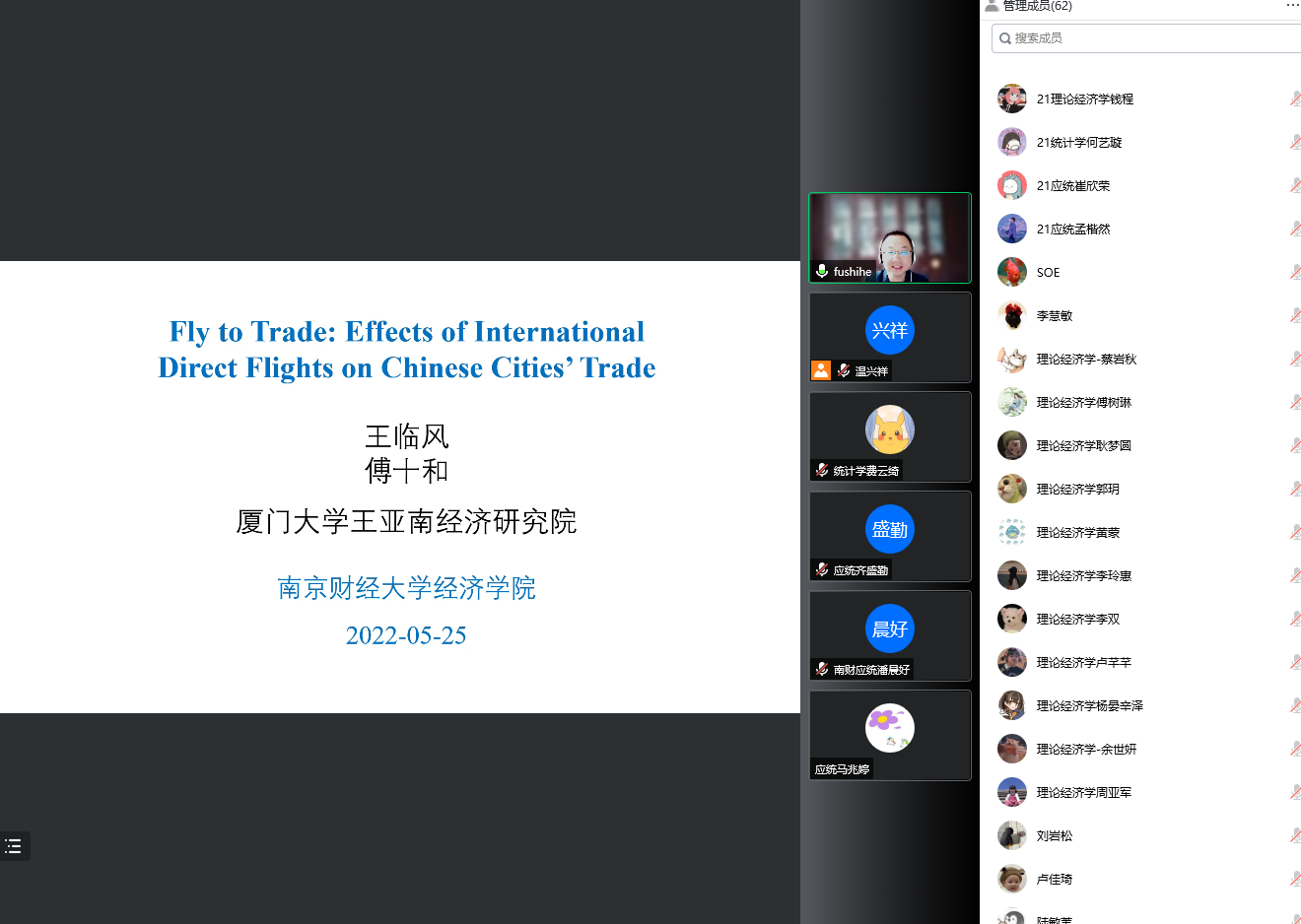 师生做了题为“Fly to Trade: Effects of International Direct Flights on Chinese Cities’ Trade”的学术报告。报告由toptoon