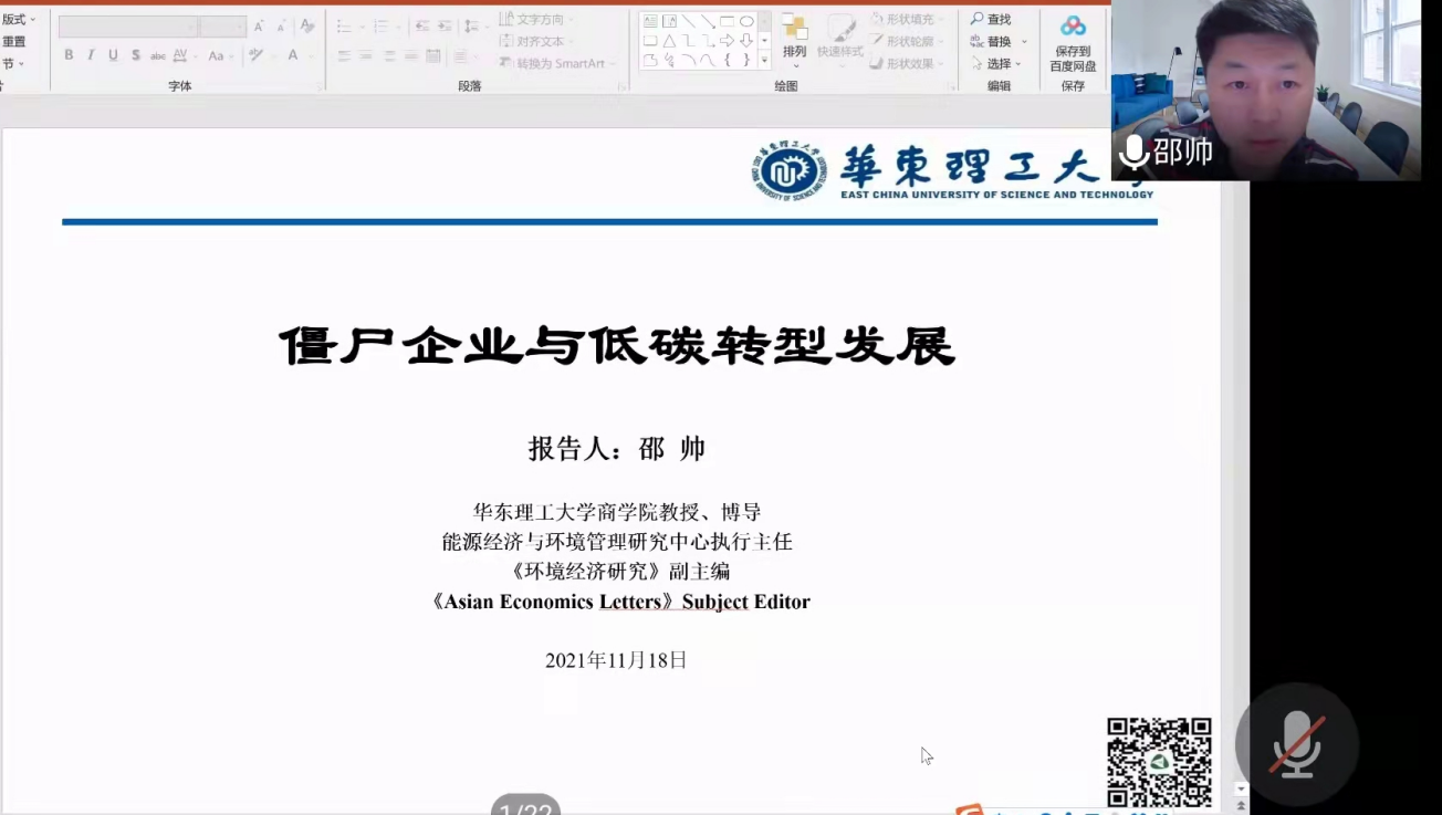 作题为《僵尸企业与低碳转型发展》的学术报告。报告由toptoon