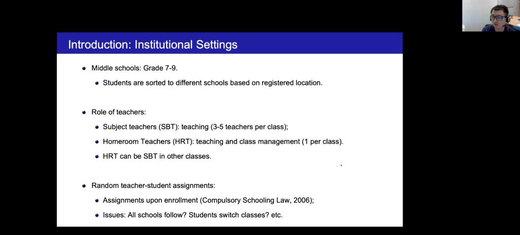 师生作了题为“Teacher Characteristics and Student Performance: Evidence from Random Teacher-Student Assignments in China”学术报告。报告由沈煜博士主持,toptoon