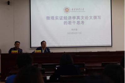 2023年4月11日下午2点,本学期双周学术论坛(第1期)在德经楼307会议室如期举行。经济统计系李庆海副教授作题为《微观实证经济学英文论文撰写的若干思考》的专题报告,论坛由副院长刘小峰教授主持,本院教师杨泳冰、邵玮、华中昱、陈燕华、沈煜,金融学院教师张雷、顾庆康及部分研究生现场聆听,共有30余人参加此次论坛。