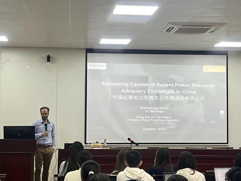 于德经楼307会议室举办主题为“低碳转型中的电力资源充足性”的专题讲座。本次讲座邀请了加州大学圣地亚哥分校机械与航空工程系和全球政策与战略学院的助理教授Michael Davidson作为主讲嘉宾,由周元春副教授主持。